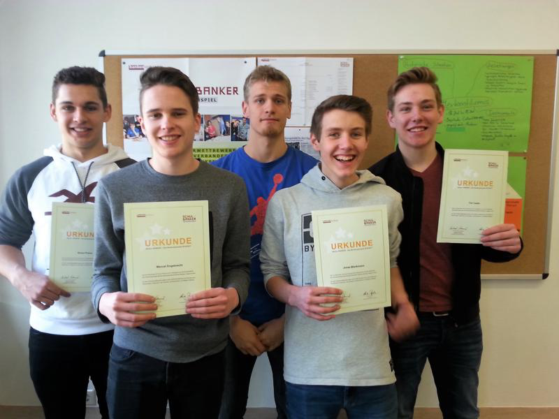 | Wie ist es, Vorstandsmitglied zu sein und die Geschicke einer Bank zu lenken? Vor dieser Aufgabe waren die Schülerinnen und Schüler der beiden Wirtschaftslehrekurse in Jahrgang 11 nicht bange. Über drei Monate trafen sie Entscheidungen über Zinshöhen im Aktiv- und Passivgeschäft, eröffneten Filialen, verwalteten ihre Terminals und Werbeetats, handelten mit Aktien und vieles mehr. Spannend wurde es immer, wenn die Ergebnisse eines Geschäftsjahres vorlagen: Haben wir die Mindestreservequote eingehalten? Haben wir Notkredite bei der Zentralbank aufnehmen müssen? Konnten wir ausreichend Rücklagen bilden? Auch wenn die Bilanzen nicht immer zur Freude gereichten, ist es den Gruppen gut gelungen, das Ruder im entscheidenden Moment herumzureißen, um am Ende solide Zahlen vorweisen zu können. Insgesamt nahmen 3900 Schülerinnen und Schüler aus Deutschland, Österreich, der Schweiz, Großbritannien und Belgien am Planspiel des Bundesverbands deutscher Banken teil. Nun sind sie um viele Erfahrungen und eine Urkunde reicher. |