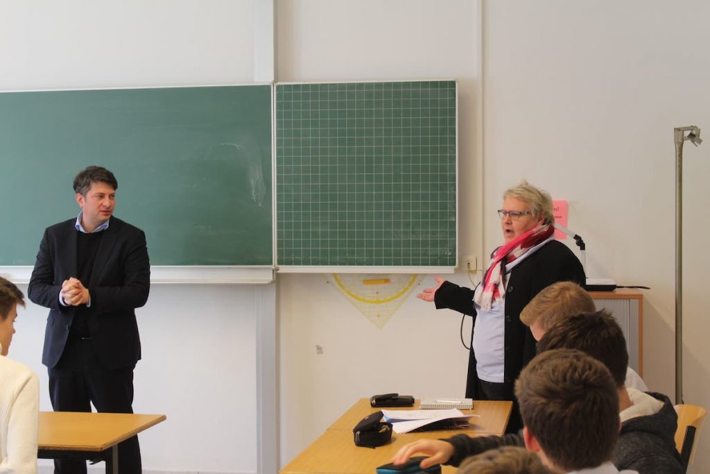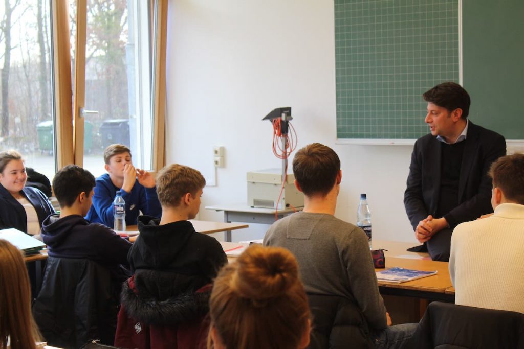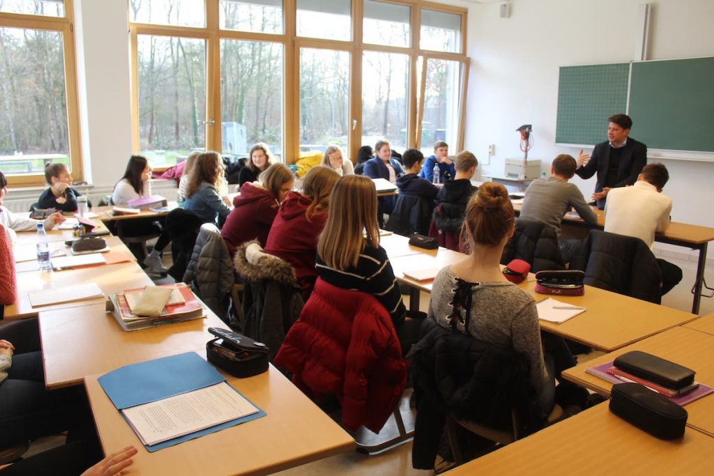 | Mittendrin statt nur dabei: Für ein vierköpfiges Team des AGQ beginnt das neue Jahr mit spannendem Politikunterricht: Mit den Schülern Amrei Küpker, Asena Kilinc, Finn Schmutte, Dennis Elschen aus der 11 A und der betreuenden Lehrkraft Bernadette Barwig ist zum ersten Mal das AGQ auf Einladung der Landesinitiative n-21: Schulen in Niedersachsen online e.V. beim Presseprojekt „Landtag-online“ vertreten. Als ausgewählte Online-Radaktion aus 39 Bewerberschulen berichten die Schülerinnen und Schüler von Mittwoch, den 23. bis Freitag, den 25. Januar 2019 live aus dem Plenarsaal des Niedersächsischen Landtags zu Hannover. Ihre Ergebnisse, Artikel und Fotostrecken werden ab 23. Januar aktuell auf Landtag-online.de und unter online-redaktionen.de veröffentlicht. Unterstützt wird die Gruppe vom Landtagsabgeordneten Christian Calderone (CDU). Der rechtspolitische Sprecher der CDU-Landtagsfraktion hat die Patenschaft für die Redaktion übernommen. Im Rahmen eines Vorbereitungstreffens in der Schule mit der gesamten Klasse 11 A stand er bereitwillig Rede und Antwort über die üblichen parlamentarischen Abläufe während eines Plenums. Ab Mittwoch ist es seine Aufgabe, Kontakte zu gewünschten Interviewpartnern aus dem Kabinett und den verschiedenen Fraktionen des Landtags herzustellen. Die Gruppe freut sich sehr auf drei Tage kompakten Politikunterricht im Niedersächsischen Landtag! B. Barwig Im folgende noch einige Eindrücke vom Treffen mit Herrn Christian Calderone (CDU / MdL): |