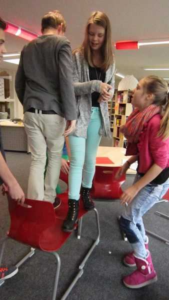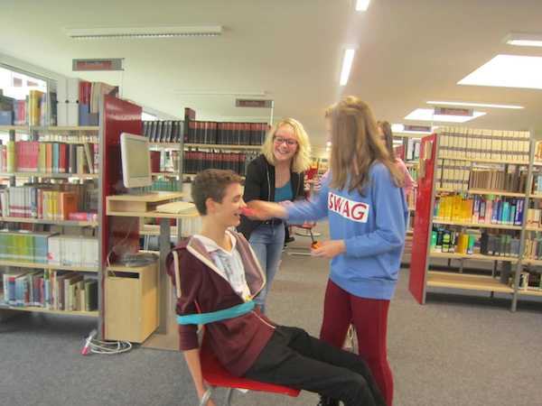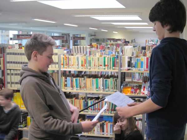 Schnell war die gemeinsame Erarbeitung eines Wortfelds zu „healthy eating“ abgeschlossen. Dann ging jeder Mitspieler, auch die Lehrerin, in seine Kleingruppe, deren Teilnehmer vorher ausgelost worden waren, denn schließlich geht es darum, dass jeder immer wieder mit jedem zusammen arbeitet und keine festen Gruppen entstehen. Motiviert und voller Begeisterung begannen alle die Handlung ihrer Minisimulation zu planen, Rollen zu verteilen, z. B. als „doctor, ecotrophologist, couch potato, fitness coach“ und ihre zahlreichen Ideen sprachlich umzusetzen. Wie immer war in dieser Einübungsphase viel Gelächter zu hören, alle hatten Spaß und waren aktiv am Unterrichtsgeschehen beteiligt. Der Höhepunkt der Englischstunde war die Präsentation der Ergebnisse der Gruppenarbeit, die zeigte, mit wieviel Kreativität die Schüler ihre Arbeiten gestaltet hatten und wie große ihre Freude war, sie den Mitschülern zu zeigen.