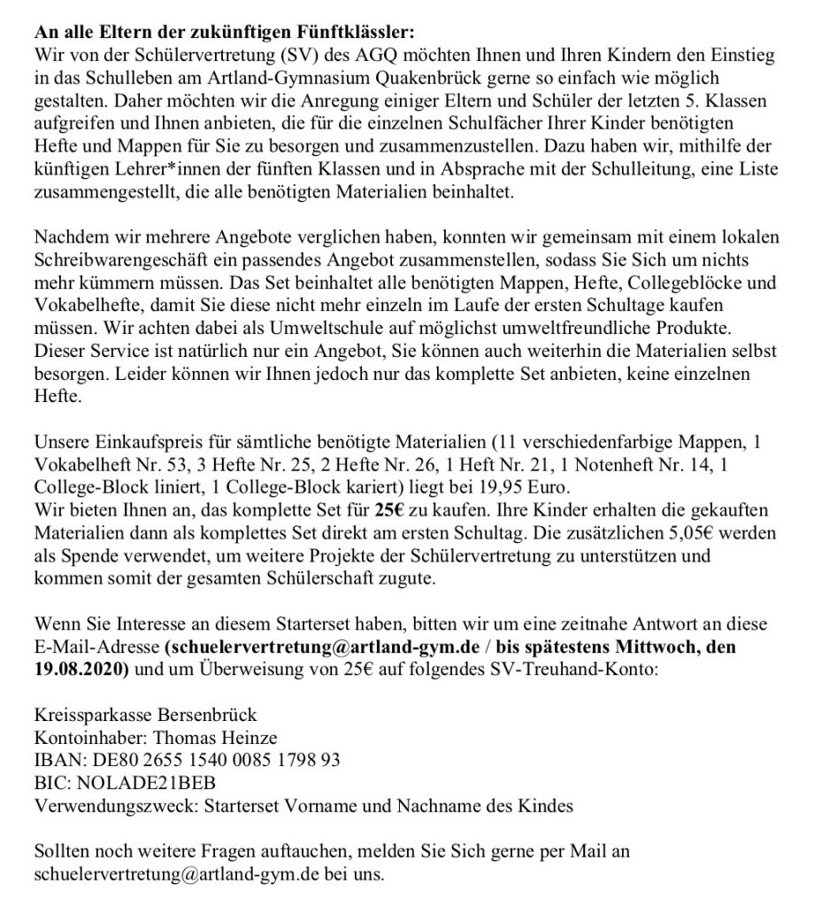 Starterset für den zukünftigen 5. Jahrgang