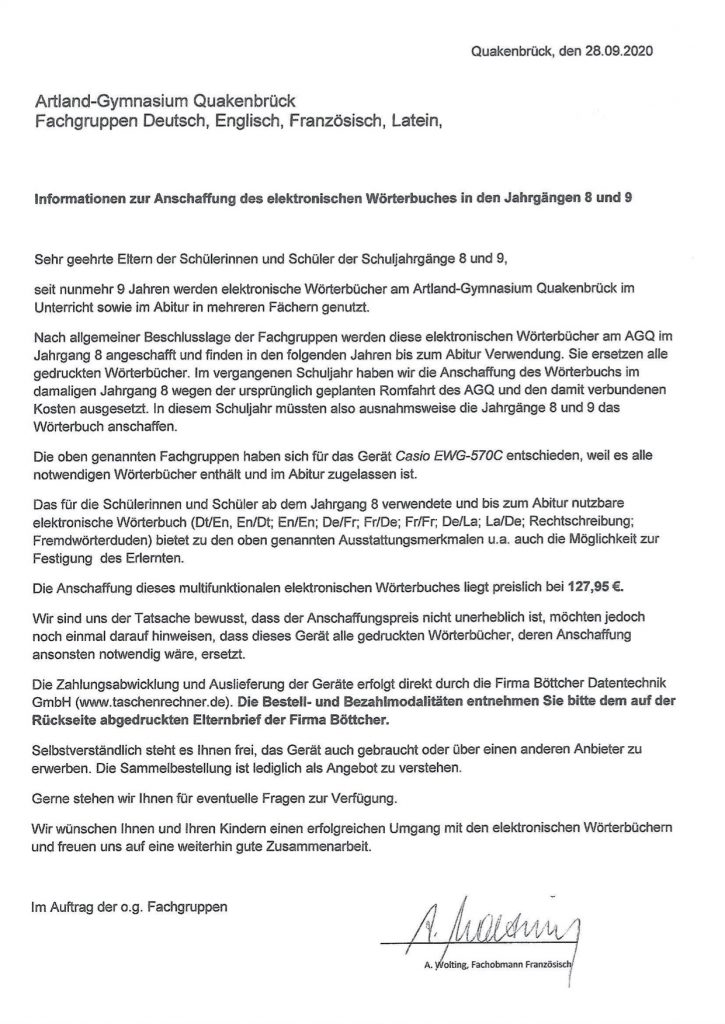 Informationen zur Anschaffung des elektronischen Wörtbuchs