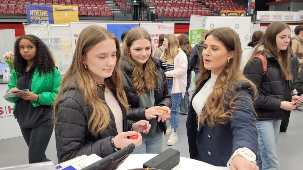 Am 17. April 24 durften wir mit dem 9. und 10. Jahrgang unserer Schule und anderen Schulen die Ausbildungsmesse in der Artland Arena besuchen. Dort haben wir viele verschiedene Berufe kennengelernt. Vom Experimentieren bis hin zum Reanimieren konnten wir viele unterschiedliche Tätigkeitsfelder entdecken.
