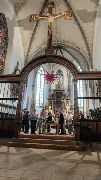 Am Donnerstag, den 04.12.2025 stimmte sich unser 5. Jahrgang im Rahmen des Religionsunterrichts auf die Adventszeit in der St. Sylvester Kirche ein. Der Religionskurs von Frau Krull hatte einen Gottesdienst zum Thema „Adventskranz“ vorbereitet und die Religions- und Werte und Normenkurse eingeladen. Es wurde unter der Anleitung von Pastorin Hachmeister-Uecker darüber gesprochen, welche Herkunft und Funktion der Adventskranz eigentlich hat. Außerdem gab es ein kleines Schauspiel, in dem die Schülerinnen und Schüler einen Adventskranz schmückten und hinterfragten warum sie diesen mit Tanne und Nüssen schmückten. Die traditionellen Adventslieder wurden ebenfalls gemeinsam gesungen. Die Schülerinnen und Schüler hatten eine große Freude daran, gemeinsam diesen Gottesdienst zu erleben. [Kr]