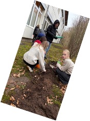 Wir haben auf verschiedenen stellen des Schulgebäudes Krokusse gepflanzt.