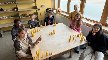 – Wir haben auf Wachsplatten einen Docht gelegt und dann zusammengerollt.